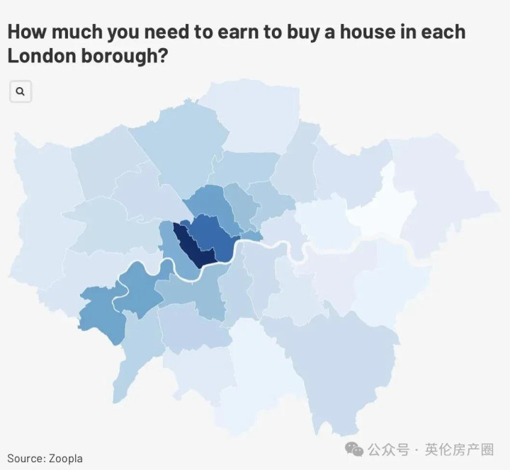 如果目标是市中心和传统富人区,那通常需要六位数以上的家庭收入;如果把范围放到外伦敦,一套房子的入场门槛,大致落在6万到8万英镑的家庭年收入区间。